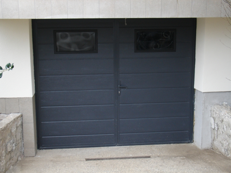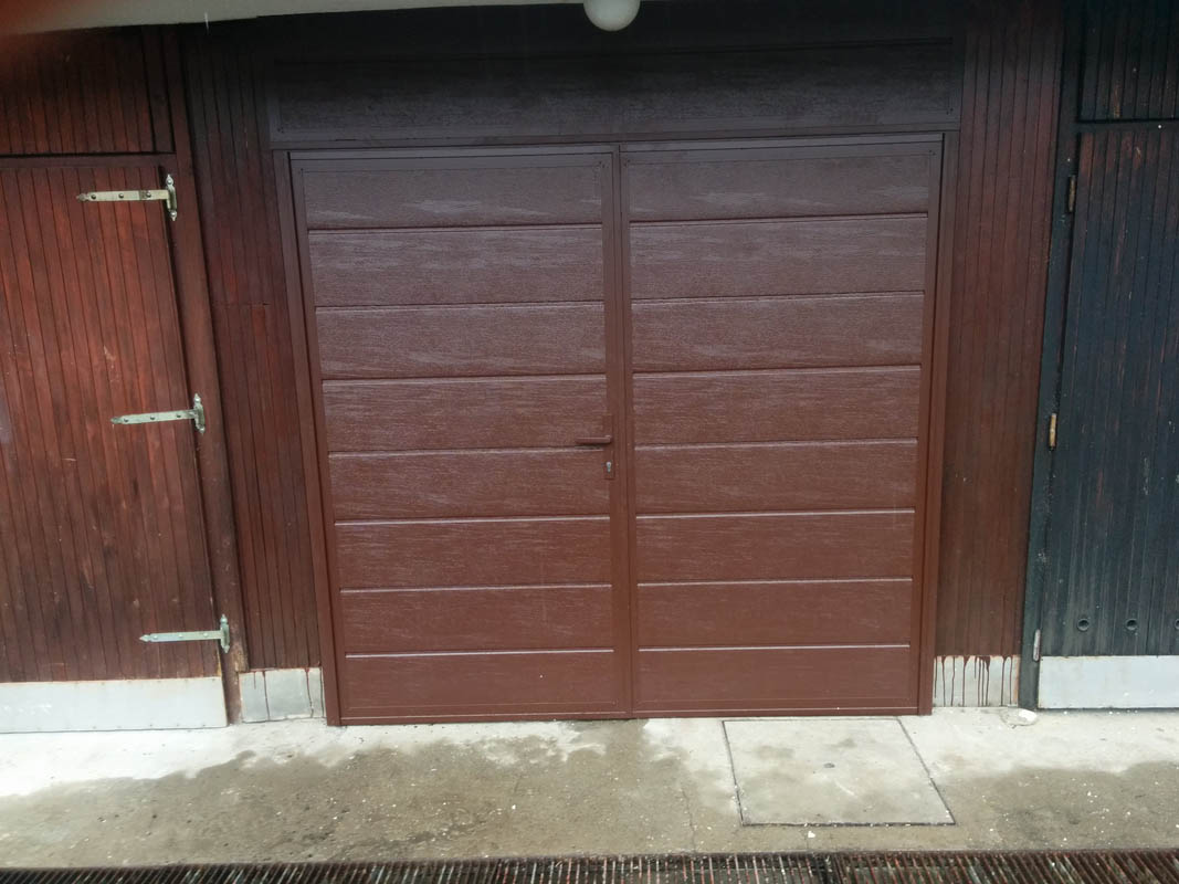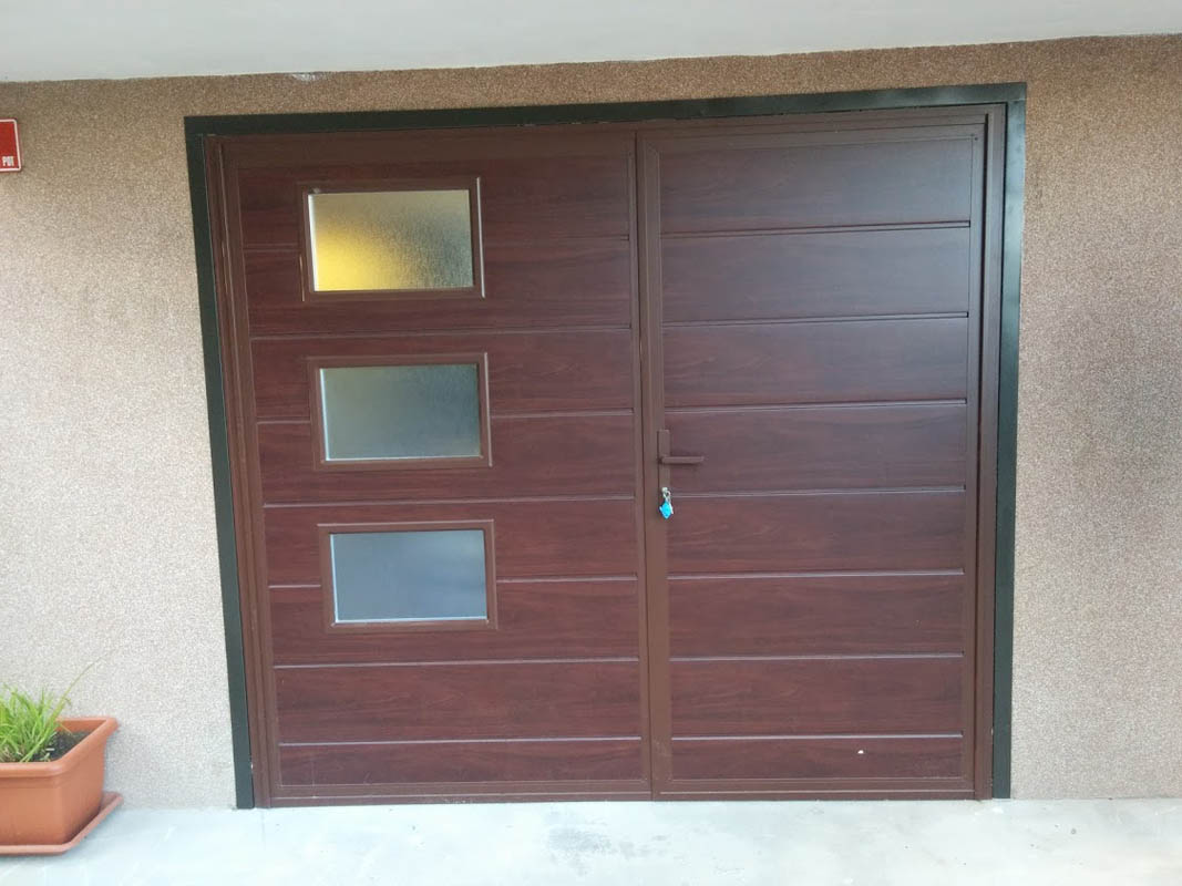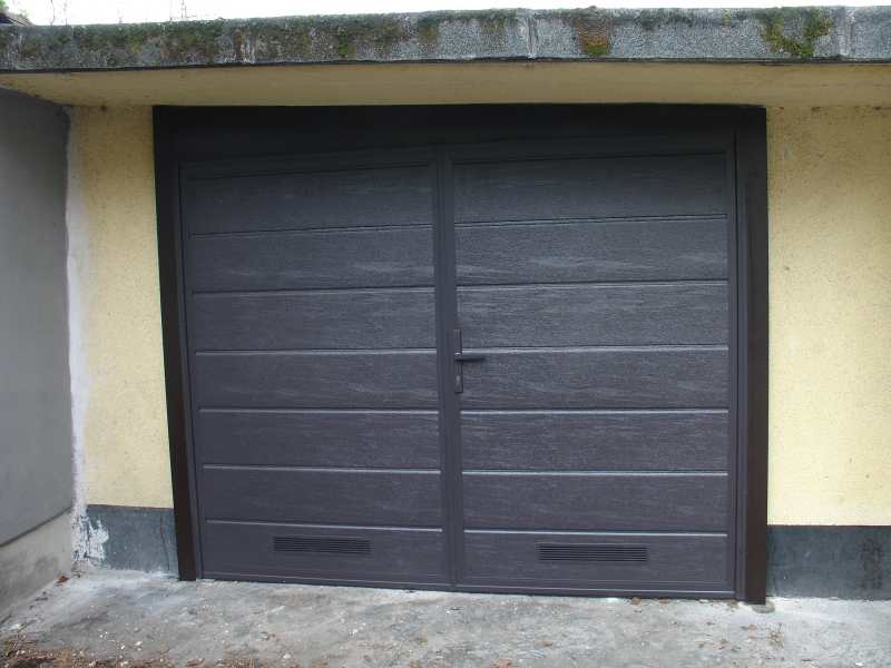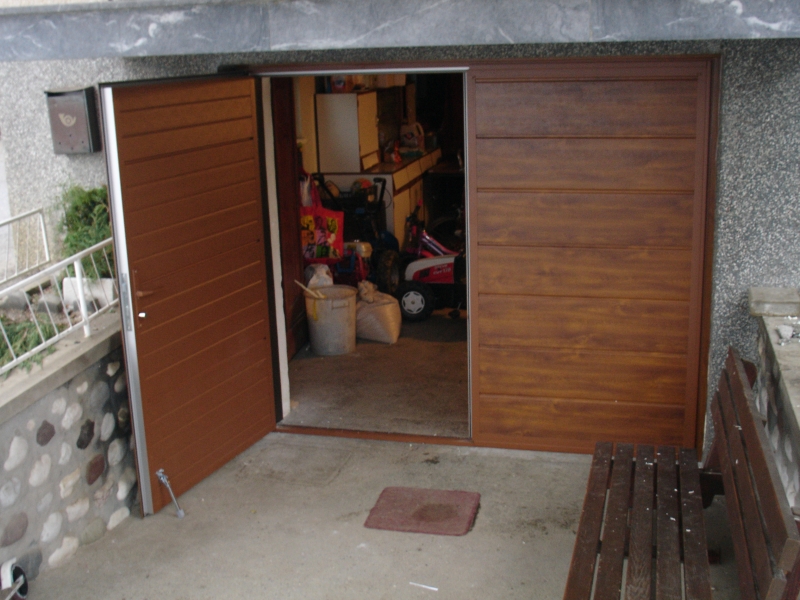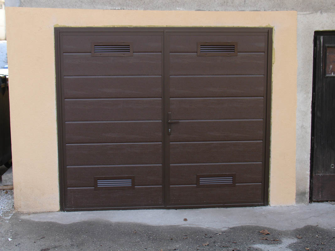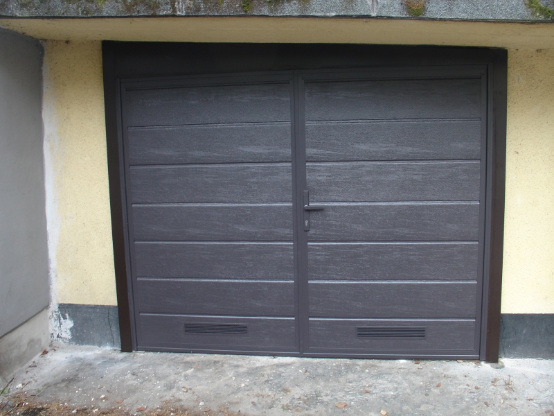 Izdelujemo dvokrilna klasična garažna vrata. Da zaokrožimo ponudbo in ustvarimo estetski videz vašega objekta, izdelamo tudi pomožna enokrilna vrata z enakim izgledom, kot garažna vrata (pomožni vhod v garažo, kolesarnica ob garaži,…). V garažna vrata vdelamo svetlobna okna, zračnike, ključna stikala in razne zaskočne pripomočke. Toplotna izolativnost uporabljenih panelov za garažna vrata znaša Up=0,30 W/m2K, debelina 4 cm. Dobavljamo jih v vseh barvnih niansah po RALU in imitaciji zlatega hrasta, temnega hrasta, mahagonija in rustikal hrast.