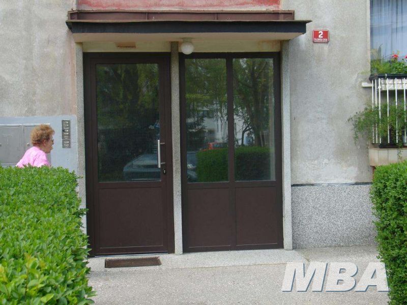 Za potrebe večstanovanjskih stavb izdelujemo vetrolove iz aluminijskih profilov in termopan stekla. Sistem odpiranja in zapiranja vrat v vetrolovu je lahko izdelan iz različnih sistemov. Vhodni del se lahko odpira tudi avtomatsko, lahko vam izdelamo sistem na šifre ali na prstne odtise. Vgradnja nabiralnikov v vhodno steno ob vratih za nas ne predstavlja nobene težave. Izdobavljivo v barvah po RAL-u.
